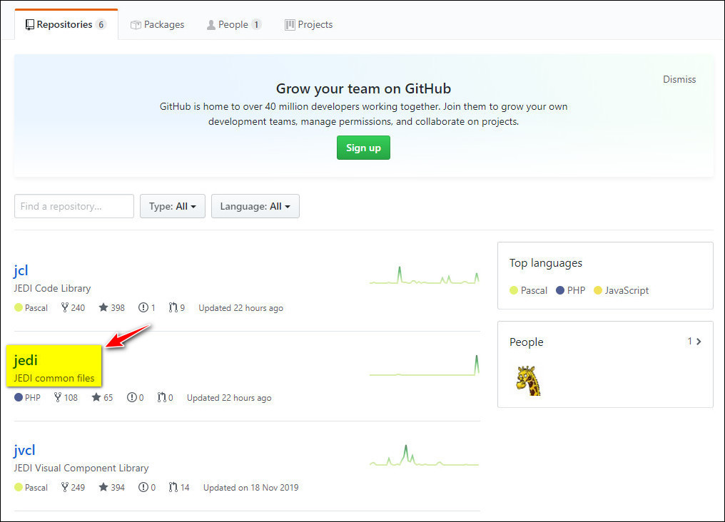 https://github.com/project-jedi/ 에 접속하여 jedi에 들어갑니다.